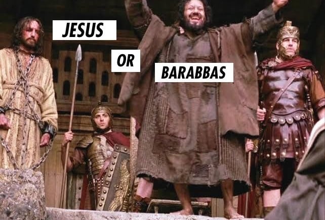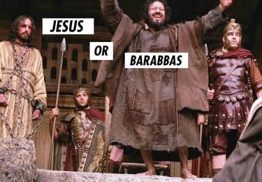Though the Jews thought they were deciding who lived and who died, Jesus was the one who was in fact deciding to offer Himself in exchange for Barabbas (us).